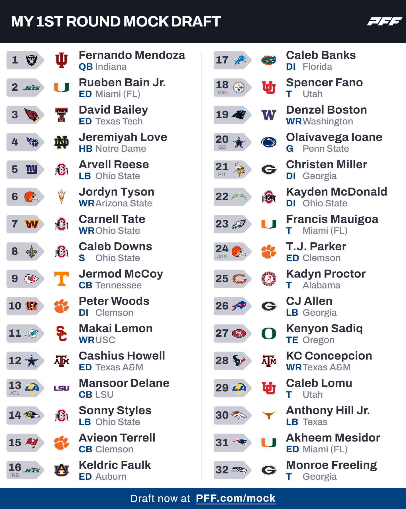 For that, our first Draft Simulation of the 2026 offseason using the PFF Mock Draft Simulator.