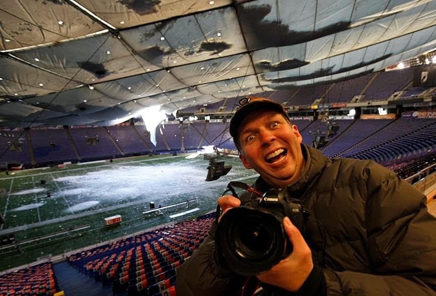 “It was stinky, we had photo positions down on the field right by the sewer pipes and we had mice and all kinds of fun stuff down there,” Peterson said. “Almost every photographer had a universal hatred for the Metrodome. The morning that we heard it collapsed it was kind of a bitter sweet thing. We knew the dome was coming to an end but to actually see the roof collapse and see all that snow on the field, it was kind of a fitting end.”
