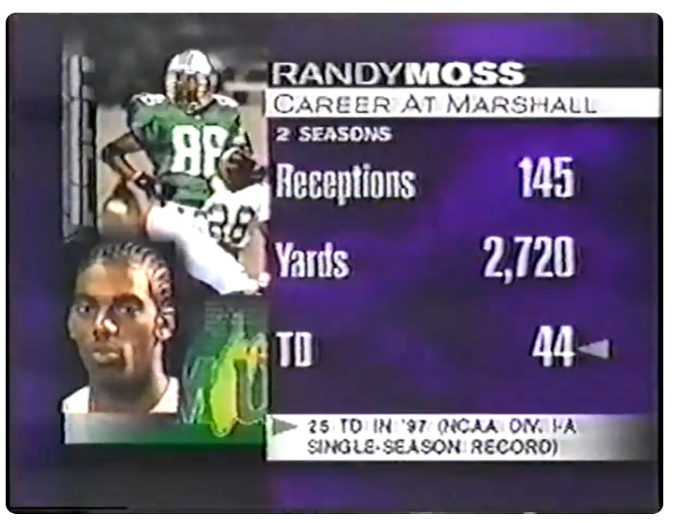 Now we’ve got former college coach Mike Gottfried talking Moss. The highlights are outrageous. Laugh out loud funny to see him flying around poor MAC players. Imagine being a current 47-year-old insurance salesman who once attempted to tackle Randy freaking Moss.