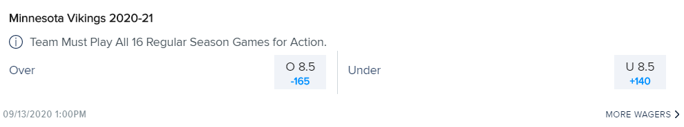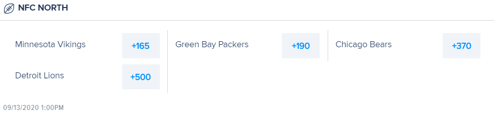 The current win total for the purple sits at 8.5/9 wins, implying that the market is pretty down on the North division. I’m on the record thinking that the Vikings will have a hard time reaching these expectations, and see a significant chance they struggle to finish 0.500 in a year where continuity will be a premium, and the Vikings are trying to install 15 draft picks and replace their best offensive player (Matthew, you can link to the episode when I called for 6-10).