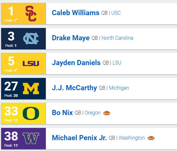 — The analysis universe has rarely been off when it comes to top-10 draft picks. What happened with Will Levis last year was an outlier. Out of 15 QBs analysts believed would be picked in the top 10, only Levis, Dwayne Haskins and Justin Fields did not end up being taken there and Haskins and Fields were still high picks. This leans heavily toward Drake Maye remaining at the top and Jayden Daniels (5th) being selected very high as well.