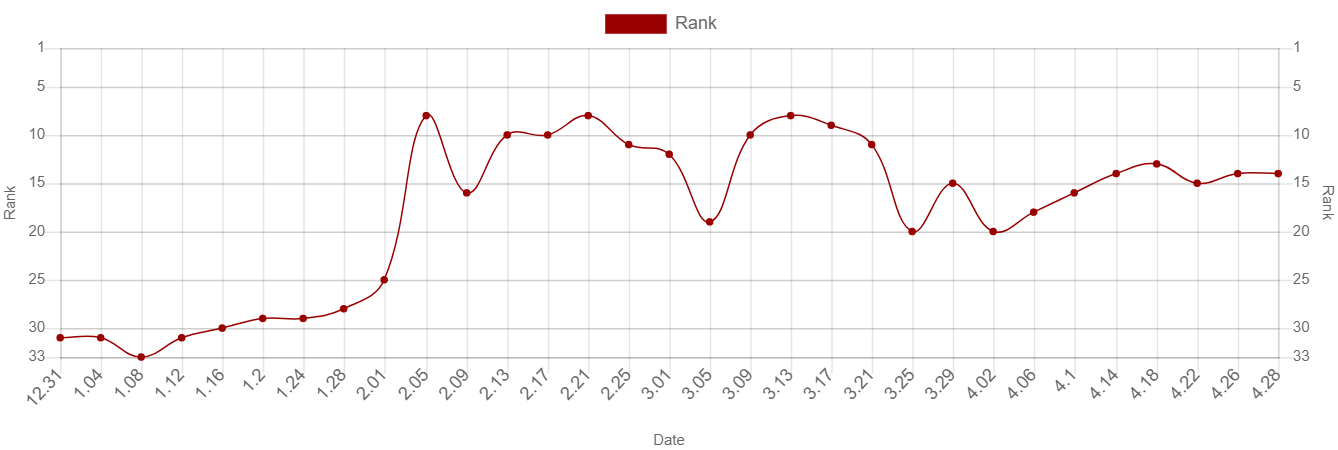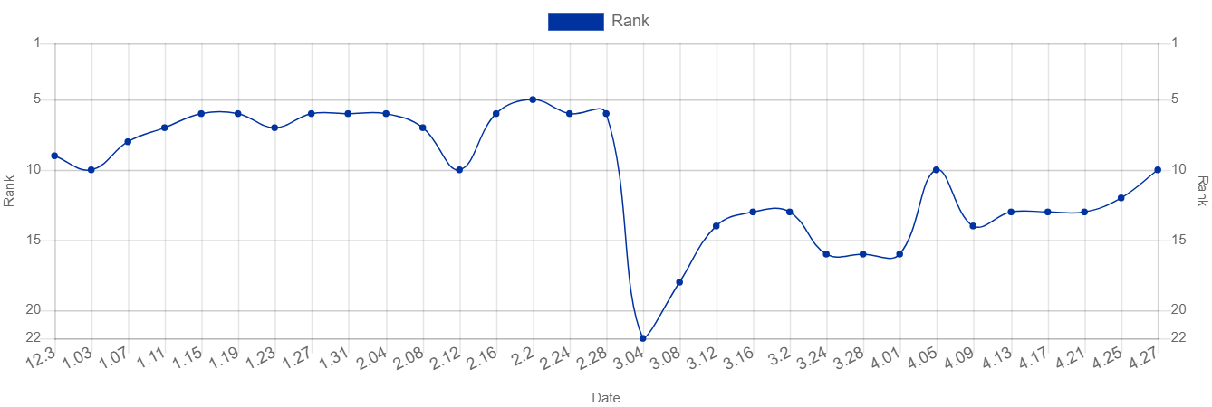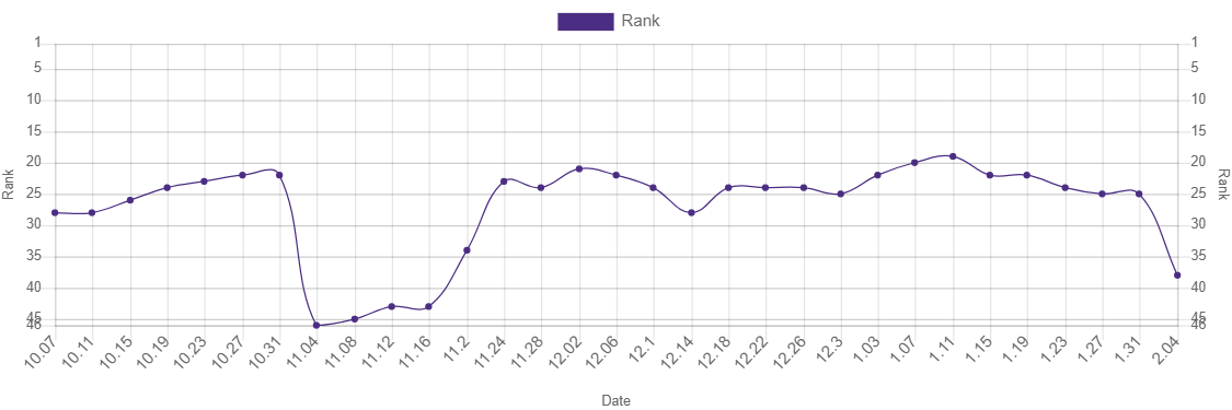 Here is a chart (via MockDraftDatabase) of Penix Jr.’s mock rankings since October: