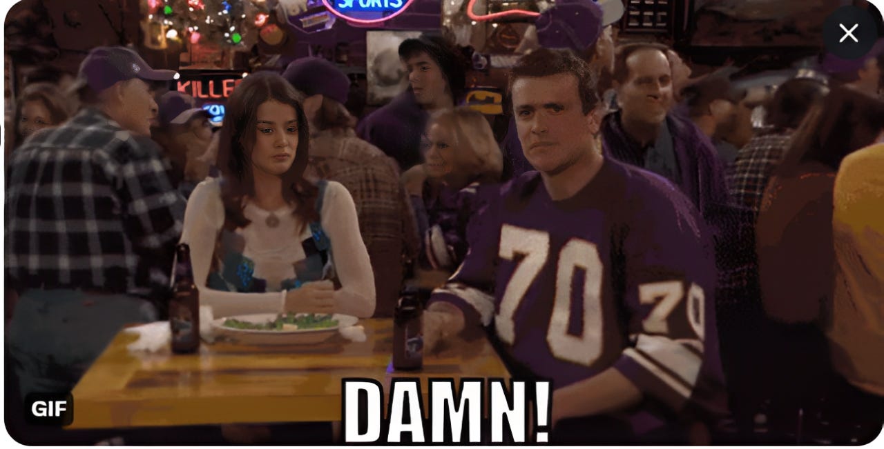 Right around 2008 social media was starting to catch fire. Sports fans began gathering online with each other in ways that were never possible before. It wasn’t too long after that Twitter implemented a button for GIFs (Graphic Interchange Format, if you were wondering) that featured thousands of clips from movies and TV shows. It wasn’t long after that Vikings fans started using Marshall Eriksen’s “DAMN!”