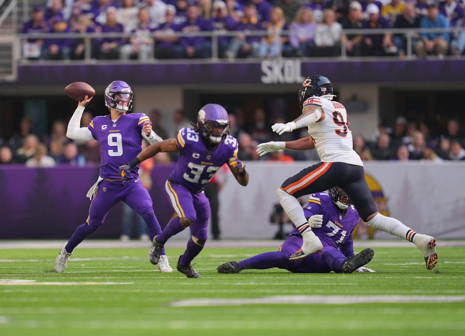 His 50-percent completion rate is hardening like concrete. McCarthy has yet to eclipse 200 passing yards in a game, with two more bad interceptions against the Bears tossed onto a smoldering pile of gaffes that is making it impossible for Minnesota’s offense to establish continuity or save the defense from exhaustion.