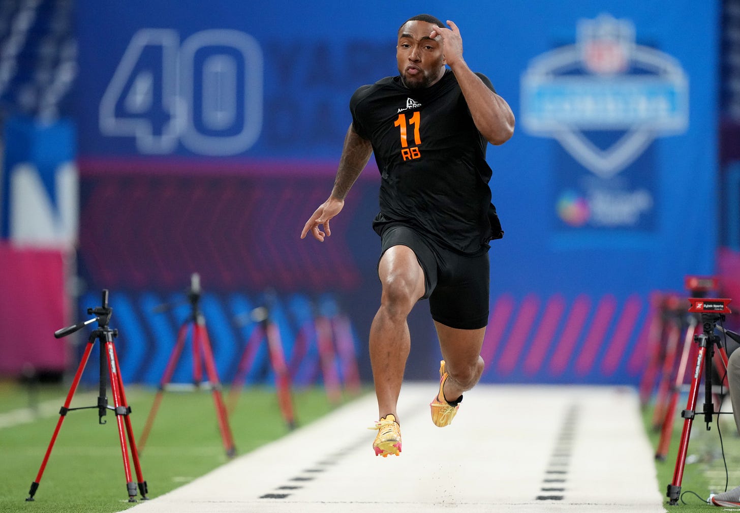 No wonder the Buckeyes raised a banner. Judkins, also a 1,000-yard runner, hit under 4.5 on the 40-yard dash at 221 pounds. His 10-yard split time was also among the best. If teams are looking for a little more on the power side than Henderson, they might go with Judkins first. It’s pretty difficult to separate them after the Combine.