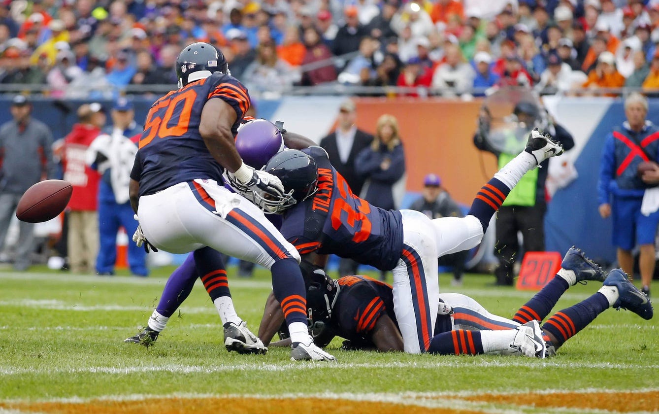 EAGAN — Twenty years ago, the Minnesota Vikings were trailing 17-14 early in the third quarter to a struggling Chicago Bears team and had the ball at their own 14-yard line. Quarterback Daunte Culpepper reacted to a Bears blitz by flinging the ball to the flat where Randy Moss was waiting wide open. He caught the ball, approached the first down marker and was met by Bears cornerback Charles “Peanut” Tillman. As the two collided, Tillman shot his hand into the football and sent it flying. Safety Mike Green picked it up, giving Chicago the ball deep in Vikings territory.