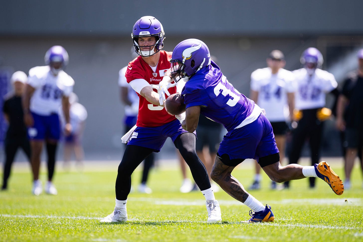 He opened the day by dropping a 30-yard touch pass into the hands of Jordan Addison. It was exactly the type of throw he’s been talking about with “layering” all offseason.