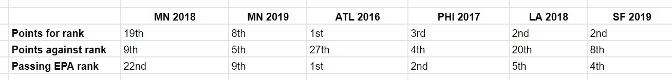 It has always been the case that passing success has correlated with overall success — heck, even the Purple People Eaters had one of the five best QBs in the NFL — but since 2016 it’s become more clear that passing efficiently and producing points is the way to The Big Game in February.